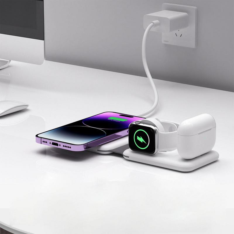 Egyszerre 3 kompatibilis eszköz vezeték nélküli töltésére is alkalmas: Apple Watch-Airpod, Android telefonok, vezeték nélküli technológiát használó telefonok.