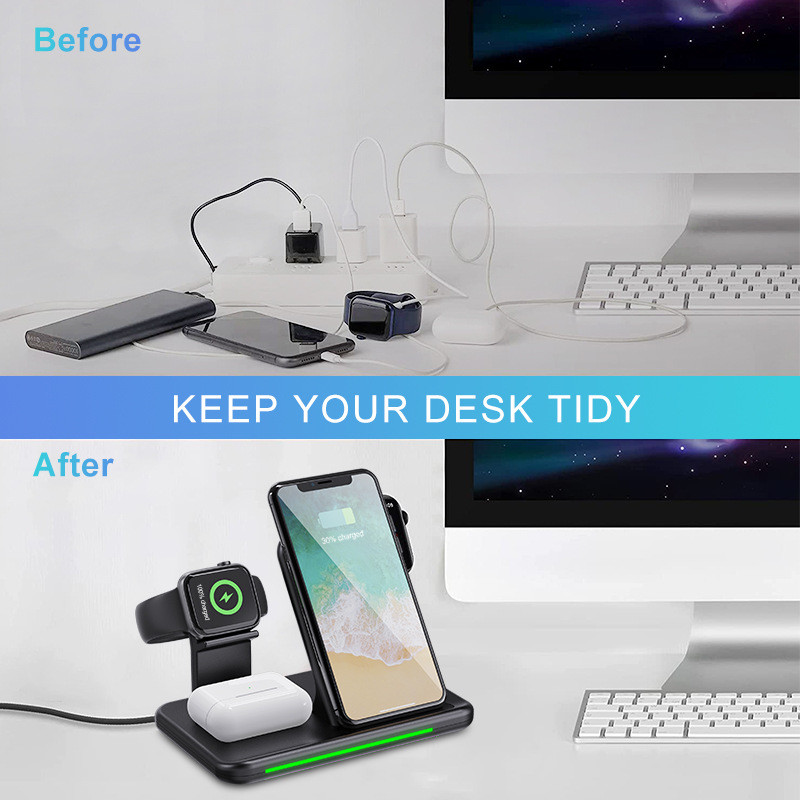 Egyszerre 4 kompatibilis eszköz vezeték nélküli töltésére is alkalmas: Apple Watch-Airpod, Android vezeték nélküli technológiát használó telefonok.
