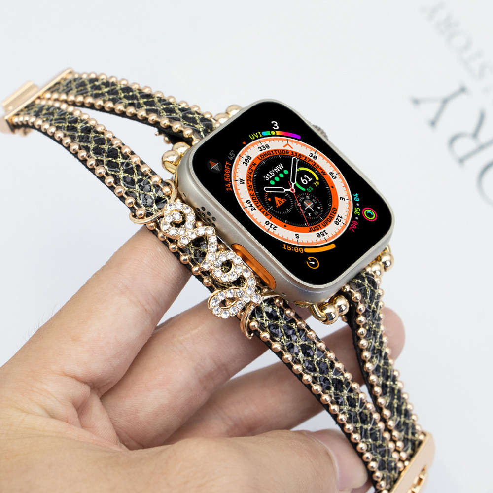 Apple Watch Love bőróraszíj-fekete-arany 38/40/41mm