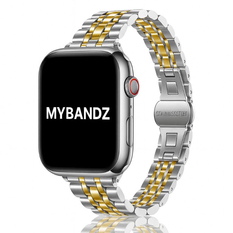 A "Pearlmaster" típusú fém szíjat először 1992-ben mutatta be a Rolex. 3 nagyobb lekerekített láncszemmel és két párhuzamosan futó keskeny láncszem alkotja az óraszíjat, ami egy kifinomult és elegáns megjelenést eredményez Apple Watch-odnak.