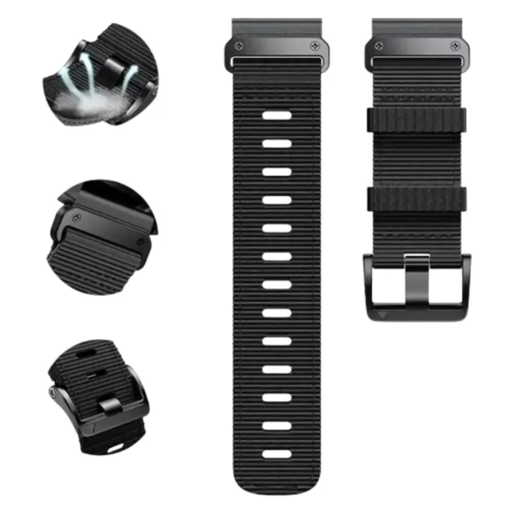 Az óraszíj magas minőségű, strapabíró szövet anyagból készült, amely egyszerre tartós és rendkívül puha tapintású. Az ergonomikus kialakítású szövés biztosítja a kiváló légáteresztést, így a szíj hosszan tartó viselés esetén is kényelmes marad, nem irritálja a bőrt és hagyja a csuklót fellélegezni.