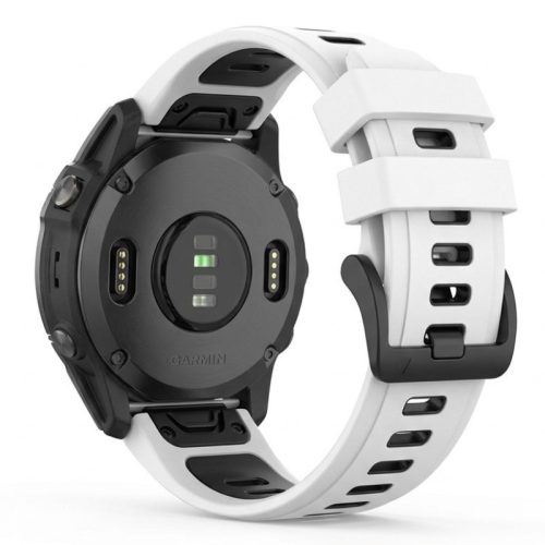 A sportos két színű kialakítás friss és energikus megjelenést kölcsönöz a csuklódnak. A kontrasztos színek játéka kiemeli az órát a tömegből, míg a gyönyörűen polírozott fekete színű csat prémium befejezést ad az összképnek. Legyen szó intenzív edzésről vagy egy pörgős hétköznapról, ez a szíj minden helyzetben jól mutat.