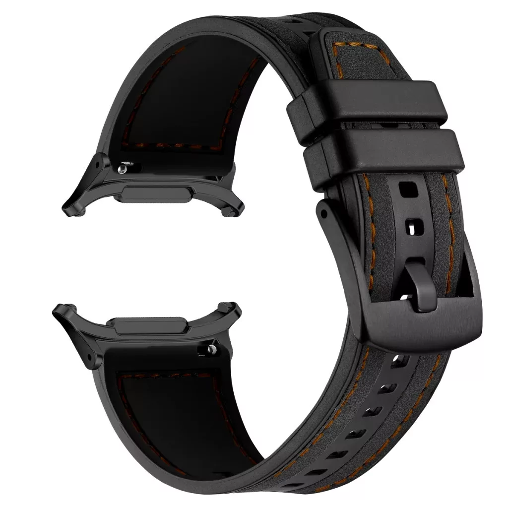 Ez a Samsung Galaxy Watch Ultra szíj modern és elegáns megjelenést biztosít, miközben kényelmes és tartós viseletet kínál. A szíj külső része prémium minőségű bőrből készült, amely elegáns, letisztult megjelenést kölcsönöz az órának, ideális mindennapi vagy akár formális alkalmakra is. A belső rész puha, rugalmas szilikonból áll, amely biztosítja a kényelmet és az izzadság elleni védelmet, különösen sportolás vagy hosszú távú használat során.