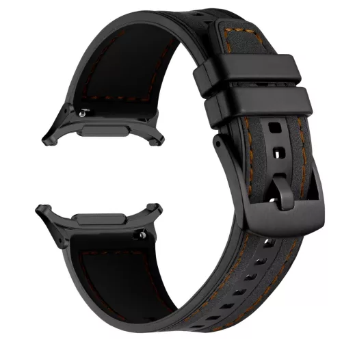 MYBANDZ Kívül puha bőr belül szilikon óraszíj/fekete-barna varrás/Samsung Galaxy Watch Ultra