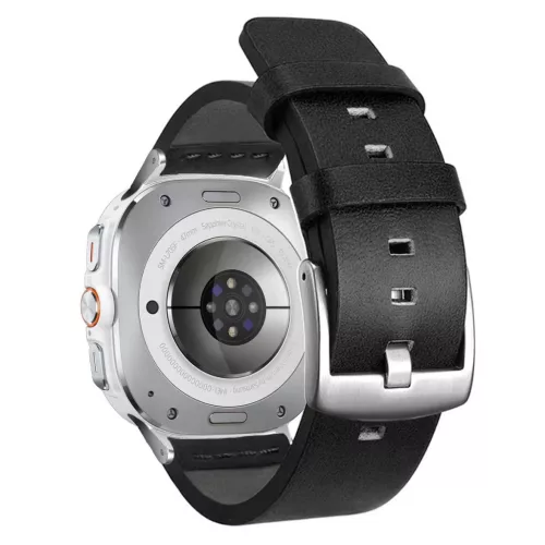 MYBANDZ Olasz bőróraszíj/fekete-ezüst csat/Samsung Galaxy Watch Ultra