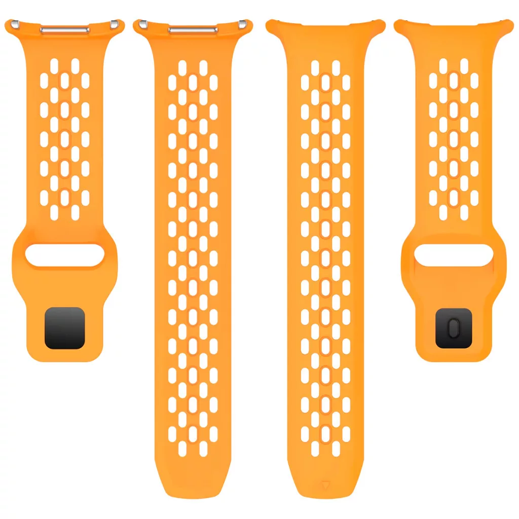 A szíj speciális perforált kialakítása lehetővé teszi a bőr folyamatos szellőzését. Ez a megoldás minimalizálja a nedvesség és a hő felhalmozódását a pánt alatt, így még a legintenzívebb sportolás közben is friss és kényelmes érzetet biztosít.