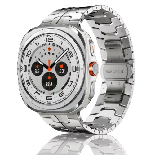 Space fém óraszíj – prémium megjelenés és modern karakter, amely határozott vonalvezetésével tökéletes kiegészítője a Samsung Galaxy Watch Ultra készüléknek.