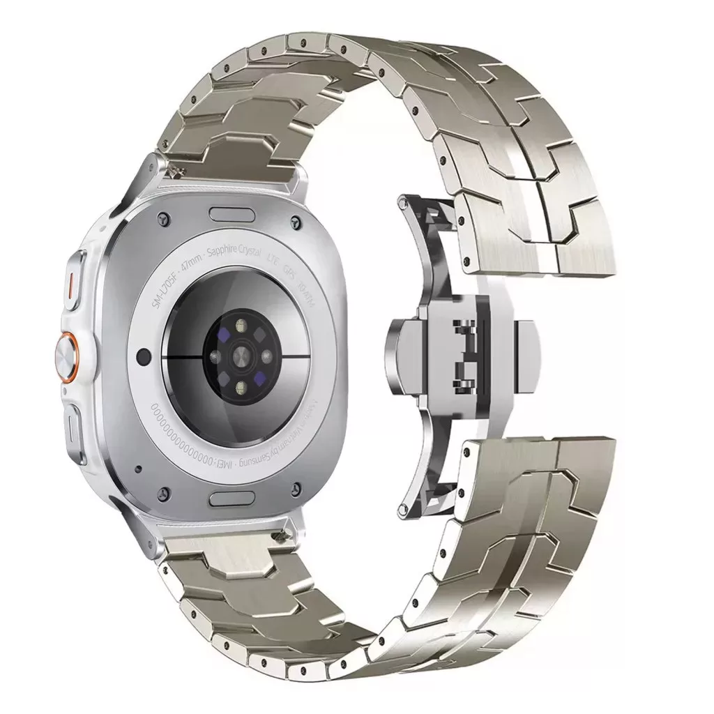 Space fém óraszíj – prémium megjelenés és modern karakter, amely határozott vonalvezetésével tökéletes kiegészítője a Samsung Galaxy Watch Ultra készüléknek.