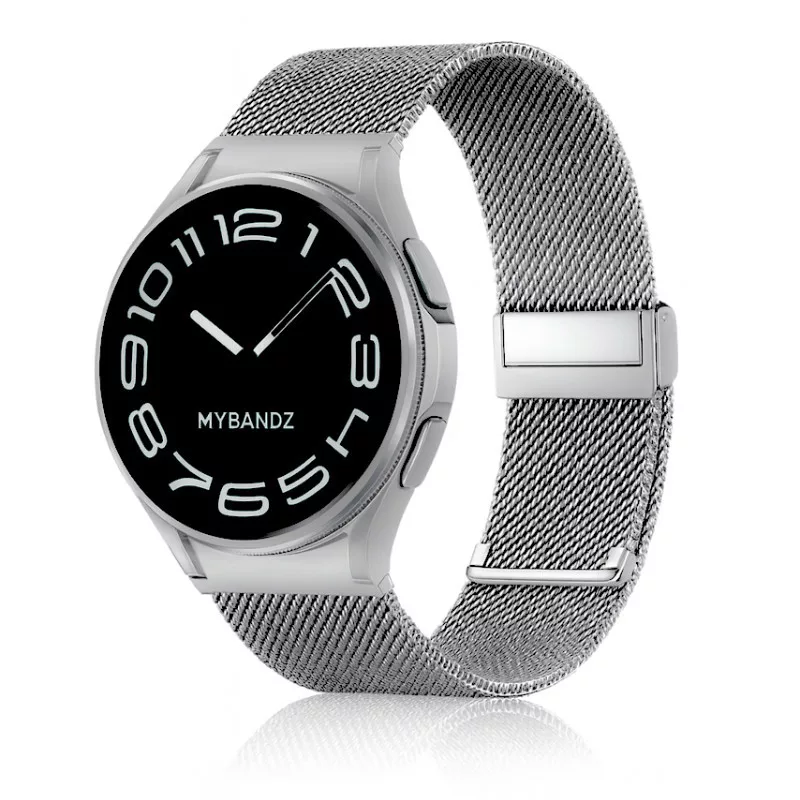 Milánói fém szíj mágneses pillangó zárral, ami még stabilabban tartja a beállított méretet mint a mágneses verzió. Olasz dizájn, könnyed és elegáns viselet is egyben, ha nem csak edzéshez szeretnéd használni a Galaxy Watch 4, 5 és 6 órádat.